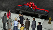 During the "Drift Problem" episode of season 3, Archer recieves a 1970 Dodge Challenger 440 6-pack as a birthday present from his mother (Malory). This muscle car has been heavily modified by Krieger with anti-pursuit counter-measures including rear oil slick release, rear caltrop release, bullet-proof body panels and windows, a grappling hook in the front, and a mini-bar in the glove box. When Archer sits inside he is greeted by a video on the features of the car hosted by a gorgeous woman, Archer then opted to call the car Genie. He later realized, after having a conversation with it, the woman didn't actually live in the car, she was just a lame pre-recorded video. Archer yells out "Thanks Dodge!" as the promotional video is playing.