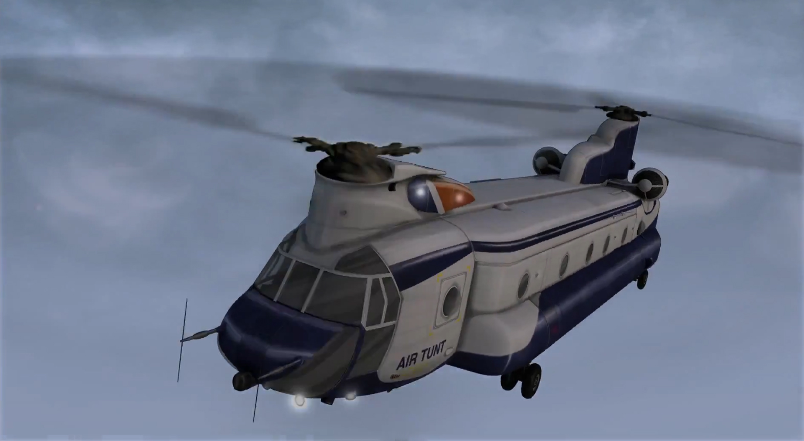 Cecil Tunt's exceedingly luxurious helicopter is a Boeing CH-47 Chinook twin-engine, tandem rotor heavy-lift helicopter piloted by his girlfriend Tiffy. It is furnished with wood paneling, full bar, vegan "cruelty free" sea food buffet, first aid kit complete with EpiPen and an extensive closed circuit television surveillance system.
