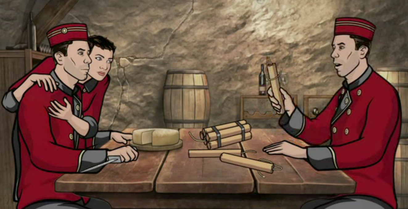 - In Swiss Miss, Malory displays a photo of El Frente Rojo in action. The photo is a near identical match to surveillance photos the Symbionese Liberation Army's robbery of the Hibernia Bank.