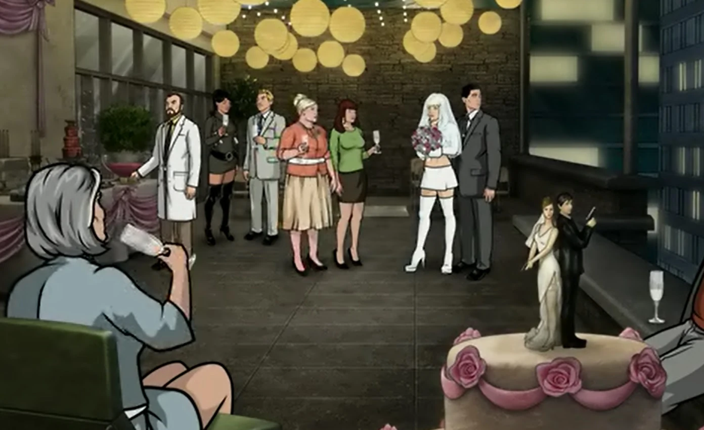 On the balcony of Archer's penthouse, Archer and Katya hold their wedding where Cheryl Tunt has her hair redone to look like Katya's and Ray Gillette reveals that he's still a licensed minister and can perform marriages (the irony of which is not lost on him). However, before the two can get married, the party is crashed by Barry Dylan who, after a previous incident with Archer, was converted into a cyborg.