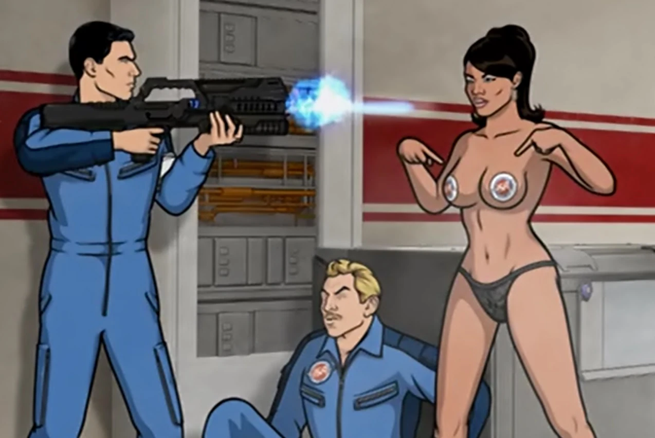- During the fight when Lana tricks the guard, the guard is heard exclaiming "My eye!" and "My other eye!" as Archer whips him with a towel. These were lines spoken by Dr. Quinn on Adam Reed's previous show.