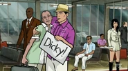 Breast cancer strikes the Archer family—Sterling has it. “I’m trying to stay positive,” he says. “I can beat this.” But before surgery, he wants to bond with young Seamus (even though he isn’t actually the baby’s father) and persuades his butler to let him take his pre-paid Las Vegas vacation with his brother Dicky, Sterling then proceeds to get arrested by the Nevada police and uses Cyril's name before escaping.