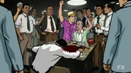 After he returns, Archer thanks Woodhouse for this kind act and promises to treat him better, which delights him. At his workplace, after (and Cyril extradited) Archer breaks down in front of his mother confessing his fear of surviving the surgery. As they drink brandy together, he and his mother come very close to saying "I love you" to each other, having a classic mother and son moment, however that is interrupted. Lana takes Sterling home and Sterling reveals that he's still in love with her and convinces her to have a one night stand out of pity, as he might not recover after the surgery.