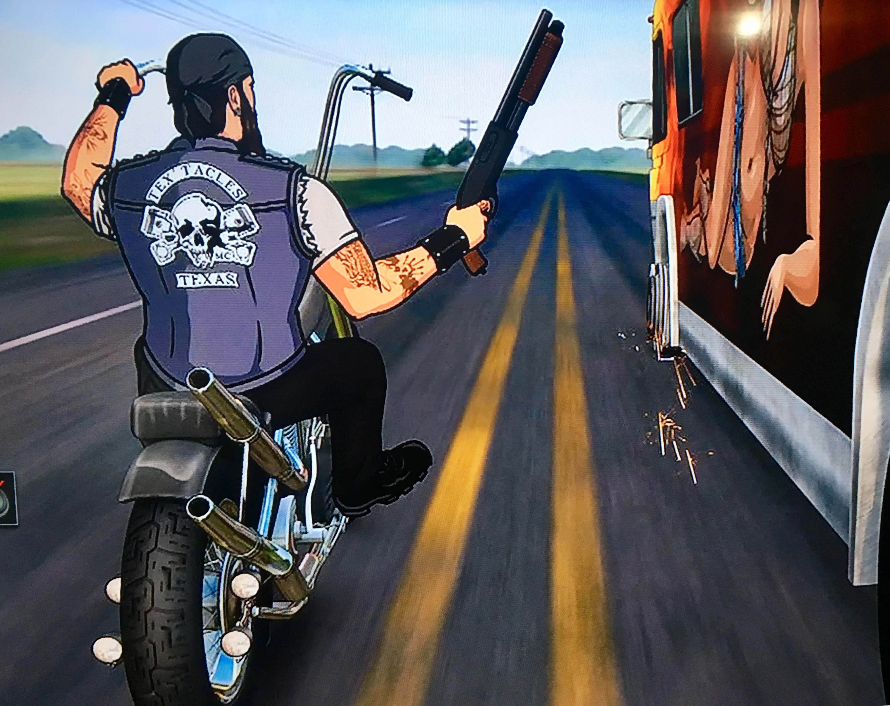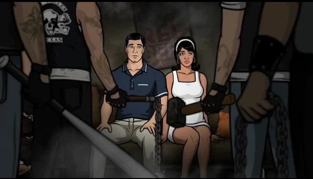 It appears that there possibly was a larger storyline involving the Tex Tacles than their one appearance attempting to steal the cocaine in “Southbound and Down”, as Archer’s dream montage shows them kidnapping Cherlene on stage, blowing up the tour bus (with Ray present) and capturing Archer and Lana, who escape on one of their motorcycles.