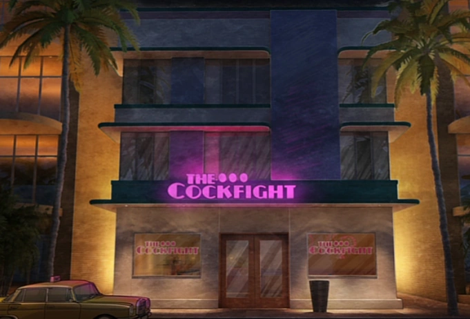 The Cockfight is the name of a gay bar located in South Beach, Florida. Charles and Rudy send Archer there to continue his attempts to seduce Ramon Limon. The name is a double entendre because they have actual cockfights there. A sign in the bar clearly states, "No Hens Allowed."